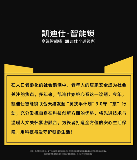 凱迪仕聯(lián)合天貓發(fā)起“黃扶手計(jì)劃”守“忘”行動,獲“愛心品牌”榮譽(yù),用科技與愛守護(hù)銀齡生活!